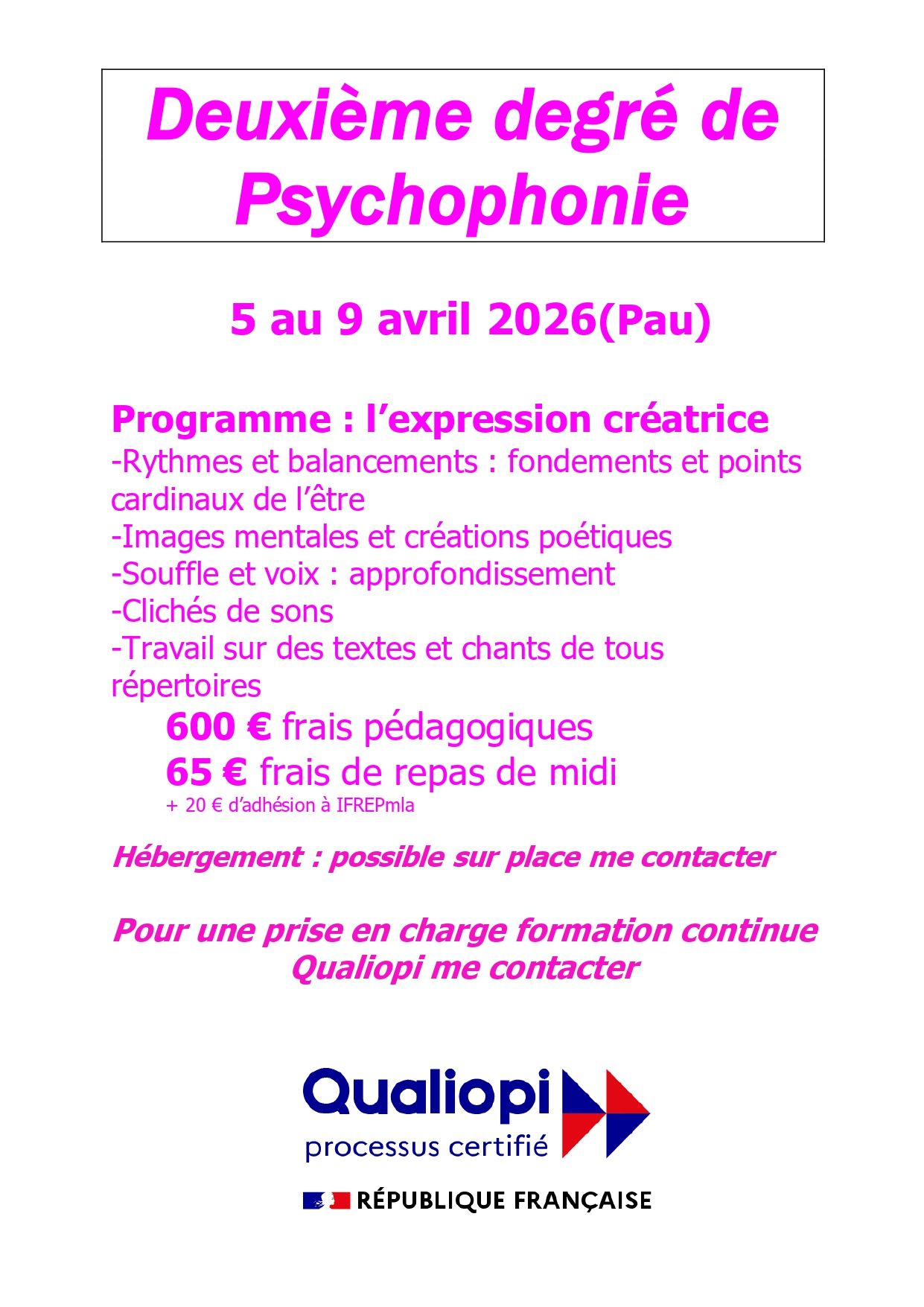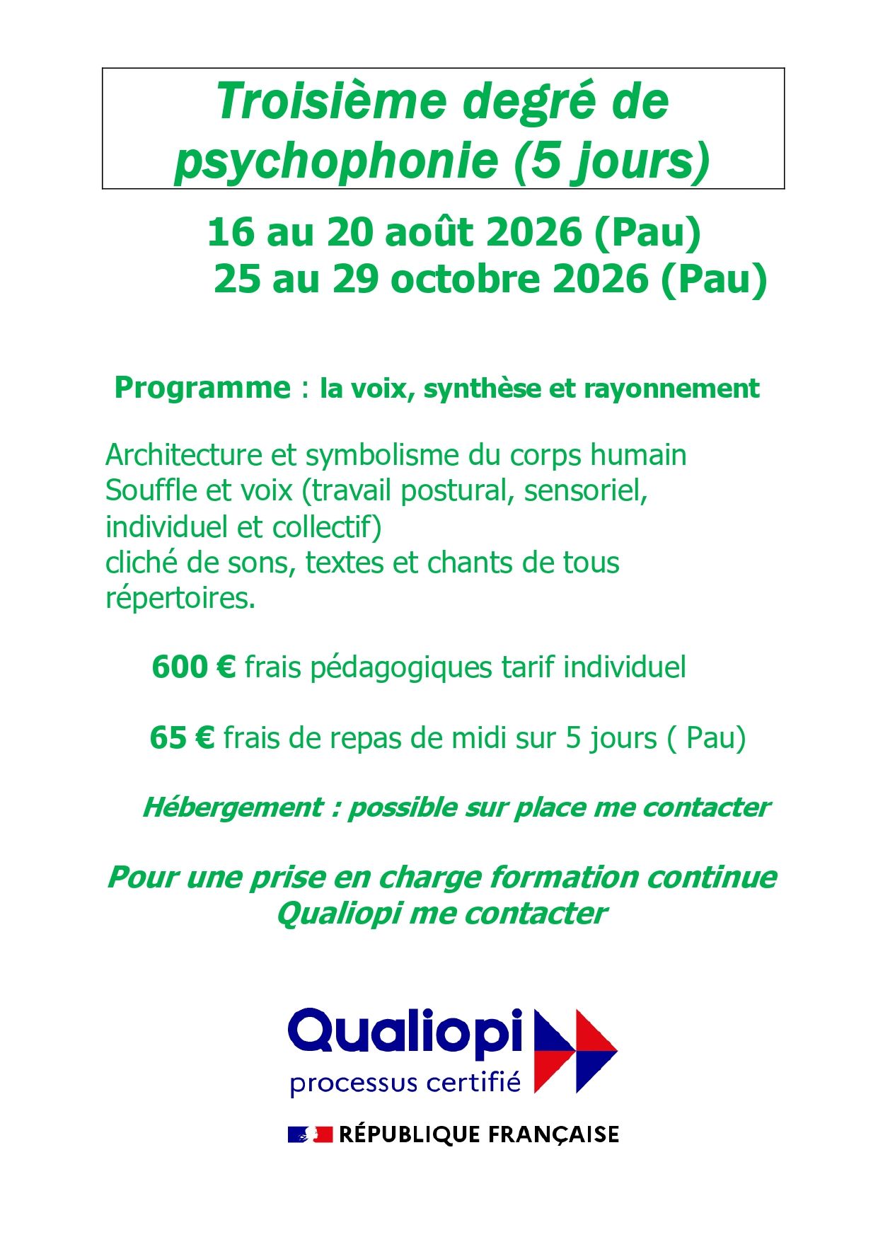 PROGRAMME DE STAGES  avec MOULLET FANNY Chanteuse, Psychophoniste ML, AUCHER